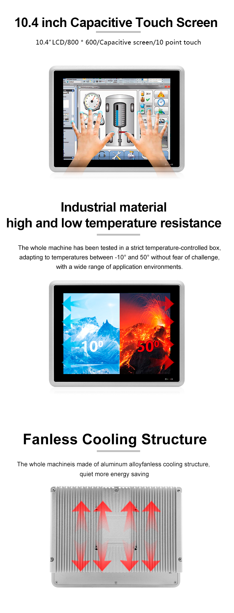● 10.4-inch LCD, 800×600 resolution, capacitive touchscreen