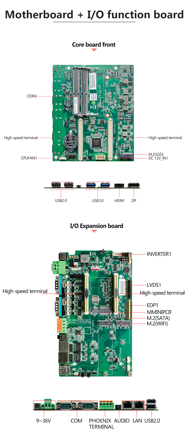 No. | Model | CPU | Memory | Motherboard | IO Board | HDD | LAN | COM | HDMI | USB2.0 | USB3.0 | power |