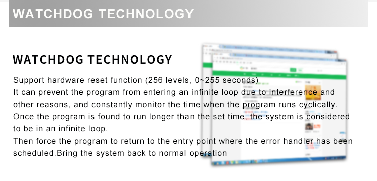 | Guard dog | Support hardware reset function (256 level, 0~255 seconds) |
