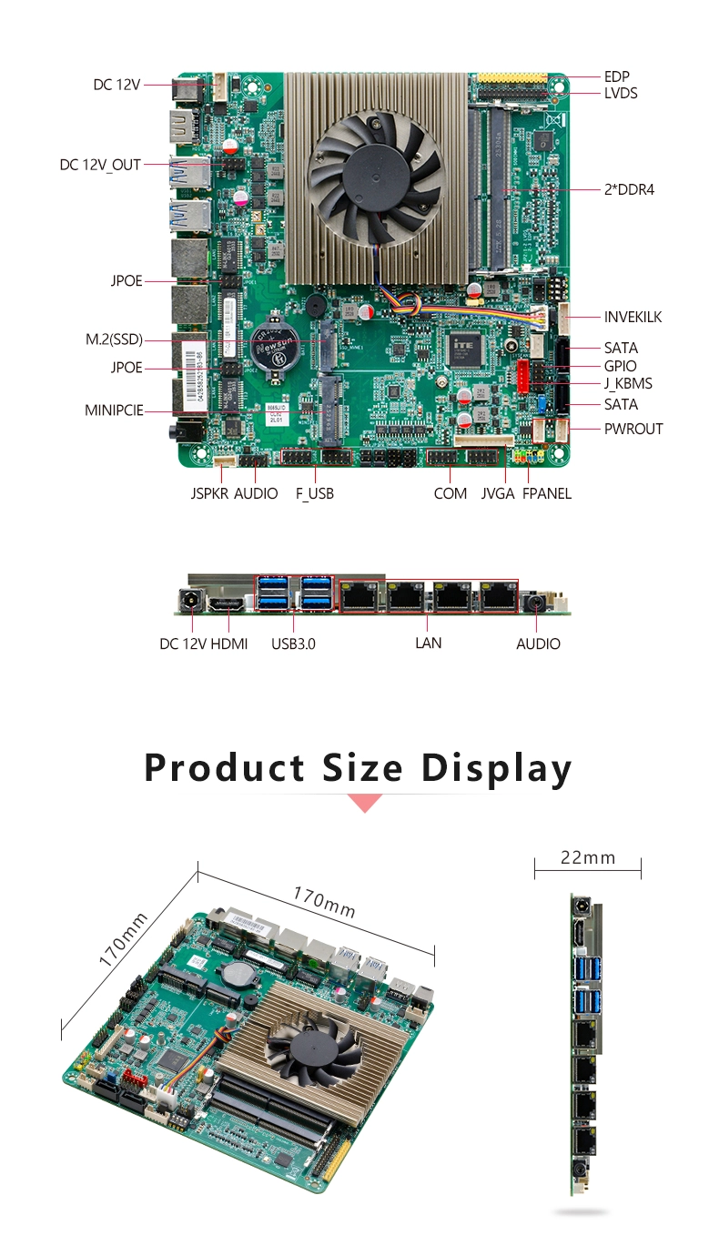 No. | Model | Processor | Frequency | Memory | VGA | HDMI | LVDS | EDP | LAN | USB | COM | RS485/422 | Power |