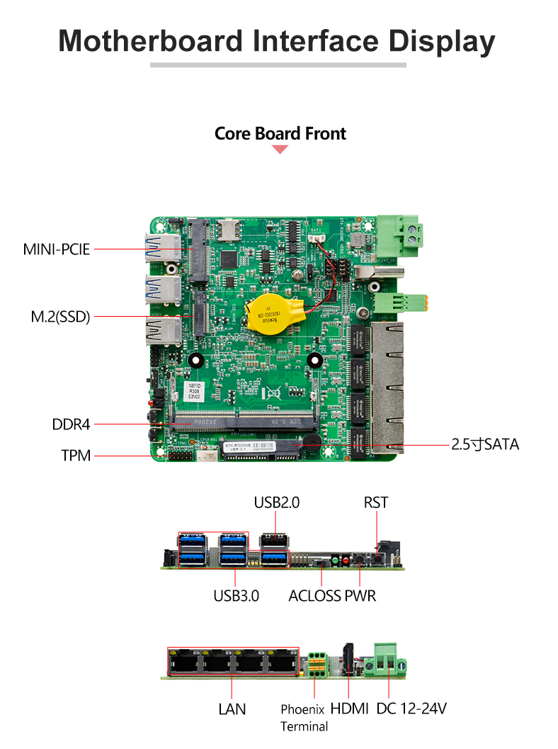1 | C2120Z-W4 V2.0(N97) | N97/Turbo 3.6G | 1*SODDR4 | STX-R305WE | M.2+2.5 | 4*I210 | 2 | 1 | 5 | 1 | DC 12-24V |